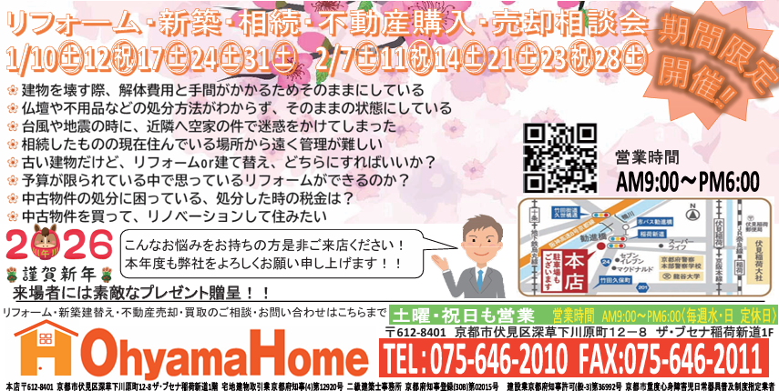 こんにちは、京都市伏見区のリフォーム・新築・不動産専門店オーヤマホームです。
